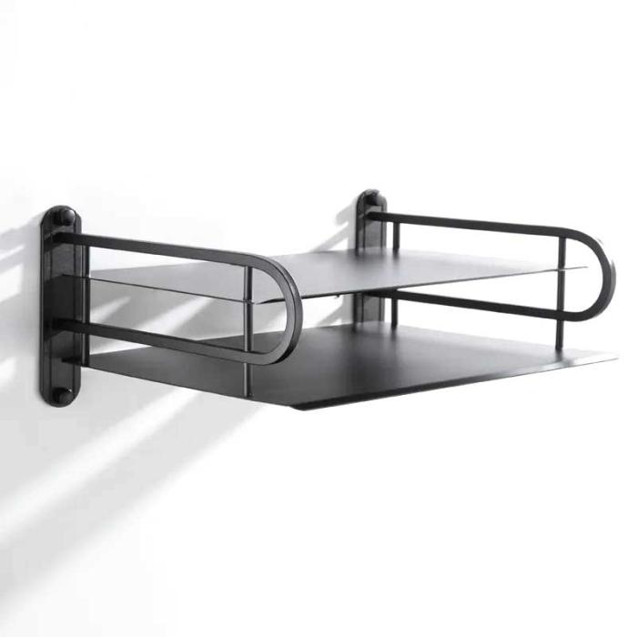 Black Metal Wireless Wifi Router Storage Box / TV Set Box Shelf Wall Hanging Plug Board Bracket Cable Storage Organizer